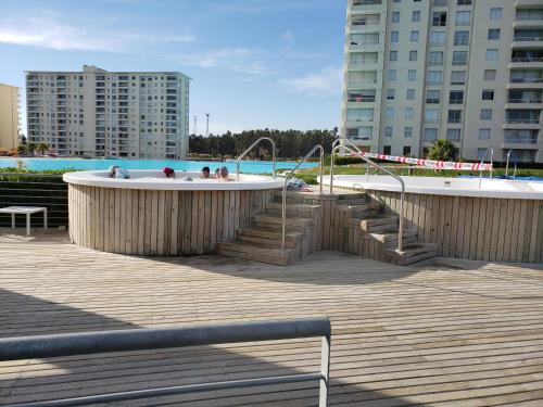 Located just 1.3 km from Playa Internacional, Departamento Laguna Bahia provides accommodation in Algarrobo with access to water sports facilities, a casino, as well as a 24-hour front desk. This beachfront property offers access to a terrace, tennis at the tennis court, free private parking and free WiFi. The apartment also offers facilities for disabled guests. The spacious apartment comes with 2 separate bedrooms, 2 bathrooms, a fully equipped kitchen with a dining area and oven, and a living room with a flat-screen TV. The apartment also provides guests with a seating area and 2 bathrooms. The property has an outdoor dining area. There is a snack bar and bar. Guests at the apartment will be able to enjoy activities in and around Algarrobo, like hiking. Barbecue facilities are available at the apartment complex, and guests can also relax in the garden or go on a picnic in the picnic area. Las Cadenas is 1.7 km from Departamento Laguna Bahia, while Playa Algarrobo Norte is 2.2 km away. The nearest airport is Santiago International Airport, 102 km from the accommodation.