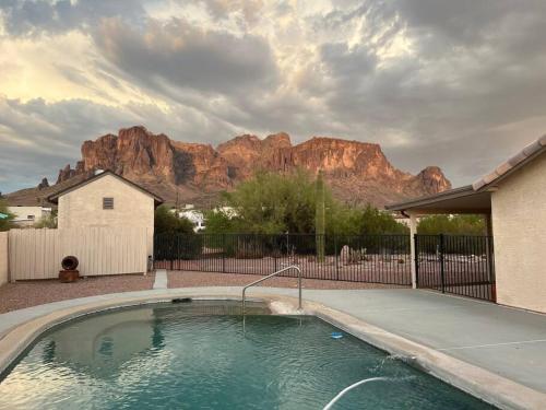 Featuring air-conditioned accommodation with a private pool, mountain view and a patio, 3-Bedroom Retreat with Pool, Spa and Mountain Views is set in Apache Junction. This property offers access to a terrace, free private parking and free WiFi. The property is non-smoking and is situated 50 km from Hall of Flame Firefighting Museum. The spacious holiday home is located on the ground floor and comes with 3 bedrooms, a flat-screen TV with streaming services and a fully equipped kitchen that provides guests with a dishwasher, an oven, a washing machine, a microwave and a toaster. Towels and bed linen are featured in the holiday home. There is also a seating area and a fireplace. Guests can take advantage of the warm weather with the property's barbecue facilities. Guests at the holiday home can enjoy hiking nearby, or make the most of the garden. Sea Life Arizona is 50 km from 3-Bedroom Retreat with Pool, Spa and Mountain Views, while Hohokam Stadium is 34 km away. The nearest airport is Phoenix-Mesa Gateway Airport, 28 km from the accommodation.