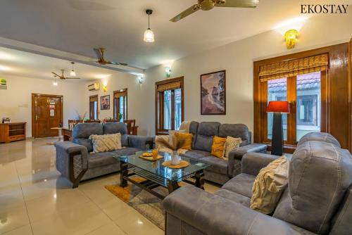 Featuring air-conditioned accommodation with a balcony, EKOSTAY- Coconut Grove Villa is located in Assagao. The property features garden views and is 8.2 km from Chapora Fort and 13 km from Thivim railway station. The accommodation provides room service and a housekeeping service for guests. The spacious villa is composed of 3 bedrooms, a living room, a fully equipped kitchen, and 3 bathrooms. A flat-screen TV is provided. As an added convenience, the villa offers packed lunches for guests to bring on excursions and other trips off-property. Guests can relax in the garden at the property. Basilica Of Bom Jesus is 21 km from EKOSTAY- Coconut Grove Villa, while Church of Saint Cajetan is 21 km away. The nearest airport is Dabolim Airport, 38 km from the accommodation.