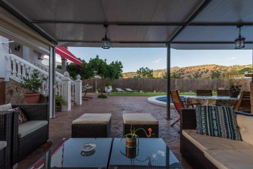 Featuring air-conditioned accommodation with a private pool, El Patio Descubre la casa perfecta para tu grupo is located in Cabra. The property features mountain and pool views. There is a sun terrace and guests can make use of free WiFi and free private parking. This villa is equipped with 5 bedrooms, a kitchen with a dishwasher and an oven, a flat-screen TV, a seating area and 3 bathrooms equipped with a bidet. Towels and bed linen are provided in the villa. The property has an outdoor dining area. Guests can also relax in the garden. The nearest airport is Federico Garcia Lorca Granada-Jaen Airport, 104 km from the villa.
