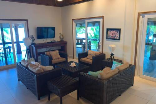 Featuring air-conditioned accommodation with a patio, Luxurious Round Cay is located in Cayos Cochinos. This beachfront property offers access to a terrace, table tennis, free private parking and free WiFi. The accommodation features full-day security, room service and currency exchange for guests. The holiday home is equipped with 6 bedrooms, a flat-screen TV with streaming services and a fully equipped kitchen that provides guests with an oven, a microwave, a washing machine, a toaster and a fridge. Guests can take in the views of the sea from the balcony, which also has outdoor furniture. The holiday home offers bed linen, towels and laundry service. There is a snack bar, and packed lunches are also available. For guests with children, the holiday home provides an indoor play area, outdoor play equipment and babysitting service. After a day of snorkelling, canoeing or walking tours, guests can relax in the garden or in the shared lounge area.
