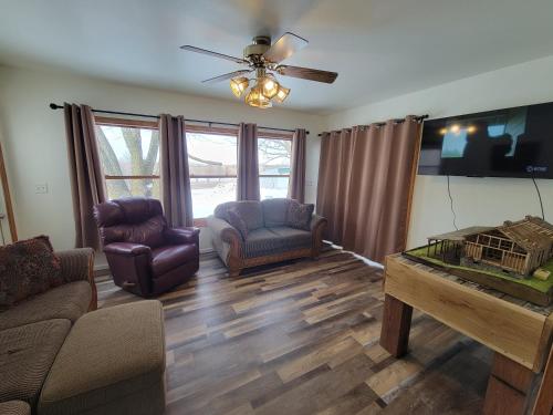 Featuring air-conditioned accommodation with a patio, Mallory Estate is located in Chariton. This holiday home provides free private parking, free shuttle service and free WiFi. The holiday home features a sun terrace and a 24-hour front desk. The spacious holiday home comes with 5 bedrooms, a flat-screen TV with streaming services and a fully equipped kitchen that provides guests with an oven, a microwave, a washing machine, a toaster and a fridge. Guests can take in the ambience of the surroundings from an outdoor dining area or keep themselves warm by the fireplace on colder days. The holiday home offers bed linen, towels and housekeeping service. For those times when you'd rather not dine out, you can choose to have groceries delivered and cook on the barbecue. For guests with children, the holiday home offers an indoor play area. Fishing and hiking can be enjoyed nearby, while a bicycle rental service and a private beach area are also available on-site. The nearest airport is Des Moines International Airport, 84 km from Mallory Estate.
