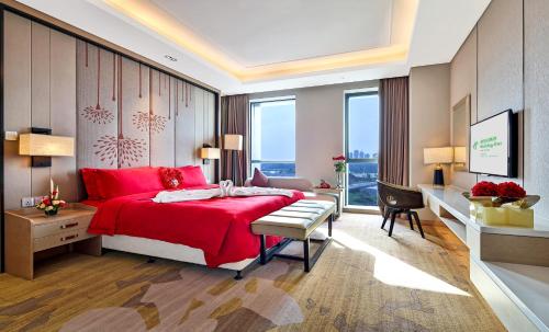 Situated in Chengdu, Holiday Inn Chengdu Qinhuang provides free WiFi. Built in 2016, the property is around a 3-minute walk from China West International Expo City. Set in the Shuangliu district, the hotel is around a 20-minute drive from Huanglong Hot Springs Ancient Town. Guests can find a subway station on Line 1, 6, 18 nearby. Chengdu Shuangliu International Airport is around a 50-minute drive away. South Railway Station is around 26 km away. At the hotel, the rooms are fitted with a desk and a flat screen TV. Each room is equipped with a private bathroom, free toiletries and a hairdryer are also provided. Guests can also find a chair specially designed to fit the human body well in each unit. Round-the-clock assistance is available at the reception. Business facilities at this property allow guests to use the printer, a fax machine and tech support. Guests may work out in the gym. Room service is also available. Yue Café and Jin Xiu Palace serve Western and Chinese delicacies respectively.