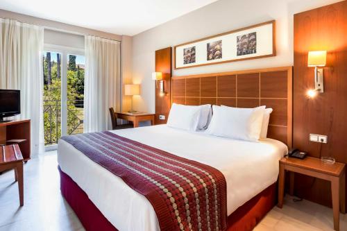 Exe Las Adelfas is set in the residential district of Brillante, 5 minutes’ drive from Córdoba city centre. It features attractive gardens, a seasonal outdoor pool and free WiFi. Rooms at Las Adelfas are bright and air conditioned. All accommodation has satellite TV and a minibar. The Exe Las Adelfas restaurant serves a daily buffet breakfast as well as dinner service from 8:30 p.m. to 10:30 p.m. The hotel is approximately 3 km from Córdoba’s old town, which has a wide selection of cafés and traditional tapas bars. The city’s famous mosque is around 10 minutes’ drive from Las Adelfas. The number 13 bus stops outside the hotel and connects you to Córdoba Railway and Bus Station, as well as the main shopping district. Free exterior parking is available, as well as secure garage parking for a surcharge.