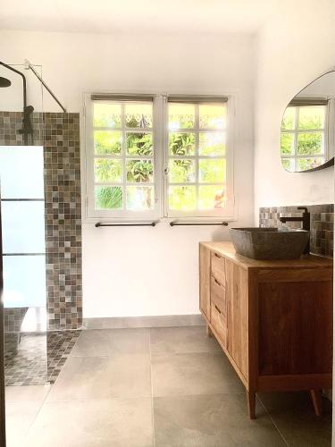 Offering an outdoor pool and views of the pool, Le "bassin pirogues" is set in Étang-Salé, 28 km from Saint-Gilles-les-Bains. This guest house is air conditioned and has a flat-screen TV with cable channels in the living room. You will find a well-equipped kitchen at the property. Guests can enjoy various activities in the surroundings, including golfing and horse riding. Saint-Denis is 45 km from Le "bassin pirogues", while Cilaos is 20 km away. The nearest airport is Roland Garros Airport, 46 km from the property.