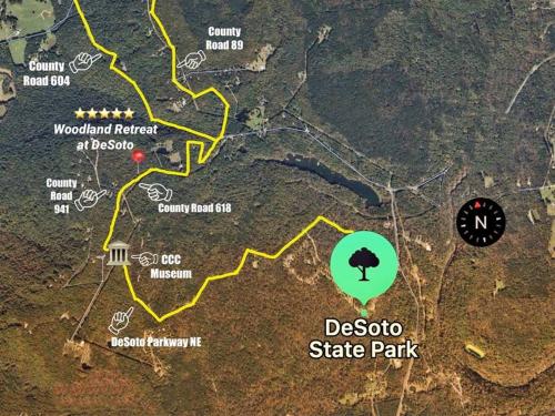 Set in Fort Payne in the Alabama region, The Otter Box Cabin - 92 Acres Beside DeSoto State Park has a balcony and mountain views. This property offers access to a terrace, free private parking and free WiFi. On clear days, guests can head outside to enjoy the holiday home's outdoor fireplace or simply kick back and relax. This holiday home is fitted with 2 bedrooms, a kitchen with a dishwasher and an oven, a flat-screen TV, a seating area and 1 bathroom fitted with a bath. Featuring air conditioning, this unit has a dressing room and a fireplace. For added privacy, the accommodation features a private entrance. Guests can also relax in the garden. The nearest airport is Chattanooga Metropolitan Airport, 91 km from the holiday home.