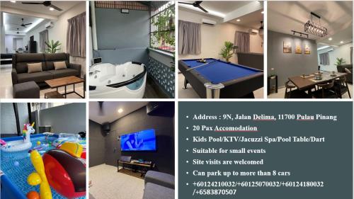 Featuring air-conditioned accommodation with a balcony, TOWN 13Px V KIDS POOL & KTV & JACCUZI SPA & POOL TABLE NEAR USM & LAM WAH EE HOSPITAL & HAN CHIANG HIGH SCHOOL is located in Gelugor. This property offers access to a terrace, pool at the pool table, free private parking and free WiFi. The property is non-smoking and is set 6.8 km from 1st Avenue Penang. The spacious holiday home features 4 bedrooms, a flat-screen TV with streaming services, a fully equipped kitchen with an oven and a microwave, a washing machine, and 4 bathrooms with a hot tub. For added privacy, the accommodation features a private entrance. A bar can be found on-site, and in the warmer months you can make use of the barbecue facilities. Guests at the holiday home can enjoy relaxing moments in the wellness area or in the the garden. For guests with children, the holiday home provides both an indoor and outdoor play area. Penang Times Square is 6.9 km from TOWN 13Px V KIDS POOL & KTV & JACCUZI SPA & POOL TABLE NEAR USM & LAM WAH EE HOSPITAL & HAN CHIANG HIGH SCHOOL, while Rainbow Skywalk at Komtar is 7.7 km away. The nearest airport is Penang International Airport, 9 km from the accommodation.
