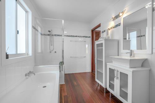 Set in Gladstone and only 3.5 km from Gladstone Marina, Luxurious tropical home with pool & island views offers accommodation with sea views, free WiFi and free private parking. This holiday home provides air-conditioned accommodation with a balcony. The holiday home has 5 bedrooms, a flat-screen TV and a fully equipped kitchen that provides guests with a dishwasher, an oven, a washing machine, a microwave and a toaster. Guests can take in the views of the pool from the terrace, which also has outdoor furniture. For added privacy, the accommodation features a private entrance. Guests can enjoy the outdoor swimming pool and garden at the holiday home. The nearest airport is Gladstone Airport, 5 km from Luxurious tropical home with pool & island views.