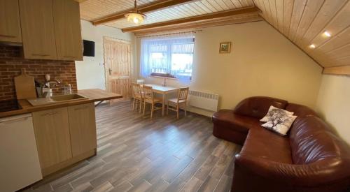Offering a garden and inner courtyard view, Apartamenty Pod Skałą is situated in Hoczew, 45 km from Polonina Wetlinska and 48 km from Chatka Puchatka. The property features garden and city views, and is 31 km from Skansen Sanok. On clear days, guests can head outside to enjoy the apartment's outdoor fireplace or simply kick back and relax. The apartment with a patio and mountain views has 1 bedroom, a living room, a flat-screen TV, an equipped kitchen with a dishwasher and a fridge, and 1 bathroom with a walk-in shower. Towels and bed linen are offered in the apartment. This apartment is allergy-free and non-smoking. A children's playground is also available for guests at the apartment. The Solina Dam is 22 km from Apartamenty Pod Skałą, while Bieszczady Forest Railway is 25 km from the property. The nearest airport is Rzeszów-Jasionka Airport, 113 km from the accommodation.