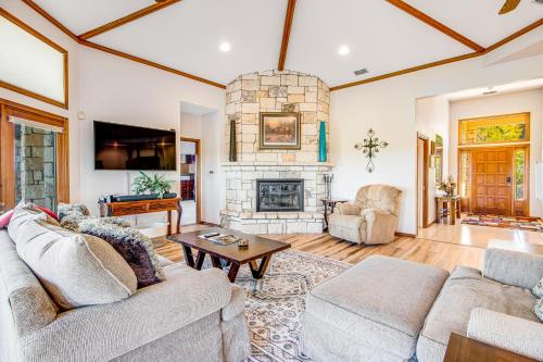 Situated in Horseshoe Bay, Majestic View features air-conditioned accommodation with a terrace and free WiFi. Guests staying at this holiday home have access to a balcony. Outdoor dining is also possible at the holiday home. The spacious holiday home has 4 bedrooms, a TV with cable channels, a fully equipped kitchen with a dishwasher and an oven, a washing machine, and 4 bathrooms with a hot tub. Towels and bed linen are available in the holiday home. There is also a seating area and a fireplace. Guests at Majestic View will be able to enjoy activities in and around Horseshoe Bay, like cycling. The nearest airport is Austin-Bergstrom International Airport, 84 km from the accommodation.