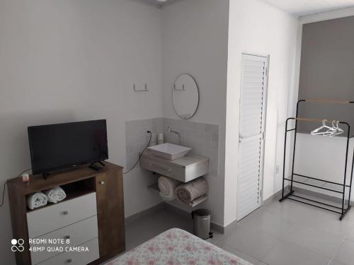 Featuring a balcony with garden views, a garden and a shared lounge, Pousada Casa Verde - quartos individuais - smart tv 32 - e banheiro privativo can be found in Itajaí, close to Atalaia Beach and 2.7 km from Cabecudas Beach. Among the facilities of this property are a restaurant, a 24-hour front desk and room service, along with free WiFi throughout the property. There is free private parking and the property provides paid airport shuttle service. Certain units in the homestay have private entrance and are equipped with desk and dressing room. At the homestay, all units have bed linen and towels. There is a coffee shop on-site. Municipal Streets is 10 km from the homestay, while Cable Car is 14 km away. The nearest airport is Ministro Victor Konder International Airport, 5 km from Pousada Casa Verde - quartos individuais - smart tv 32 - e banheiro privativo.