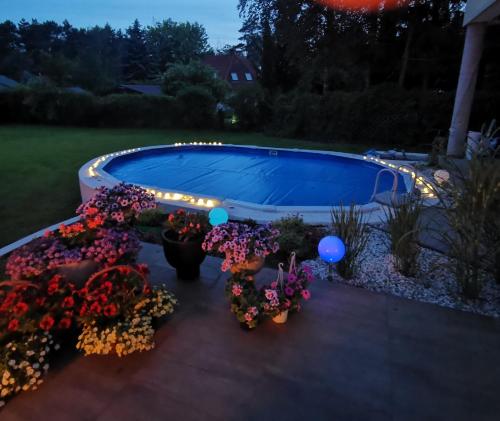 Featuring a garden, private pool and garden views, RETRO WILLA is located in Koronowo. This property offers access to a balcony, table tennis, free private parking and free WiFi. On clear days, guests can head outside to enjoy the villa's outdoor fireplace or simply kick back and relax. The villa with a terrace and pool views features 4 bedrooms, a living room, a flat-screen TV, an equipped kitchen with a dishwasher and a microwave, and 2 bathrooms with a bath. Towels and bed linen are provided in the villa. There is also a seating area and a fireplace. A minimarket is available at the villa. Guests at the villa will be able to enjoy activities in and around Koronowo, like cycling. RETRO WILLA has a picnic area and a barbecue. Myślęcinek Park is 24 km from the accommodation, while Opera Nova Conference Centre is 31 km away. The nearest airport is Bydgoszcz Ignacy Jan Paderewski Airport, 33 km from RETRO WILLA.