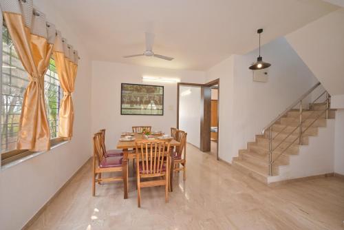 Featuring air-conditioned accommodation with a private pool, mountain view and a balcony, Orchid mountain view with private swimming pool 3BHK villa is located in Malavli. This property offers access to a terrace, free private parking and free WiFi. Guests can make use of a garden. Located on the ground floor, this spacious apartment is equipped with 3 bedrooms, a well-equipped kitchen with a fridge and kitchenware, a living room, and a flat-screen TV. Guests can take in the ambience of the surroundings from an outdoor dining area or keep themselves warm by the fireplace on colder days. Additional in-room amenities include wine or champagne. The nearest airport is Pune International Airport, 62 km from the apartment.
