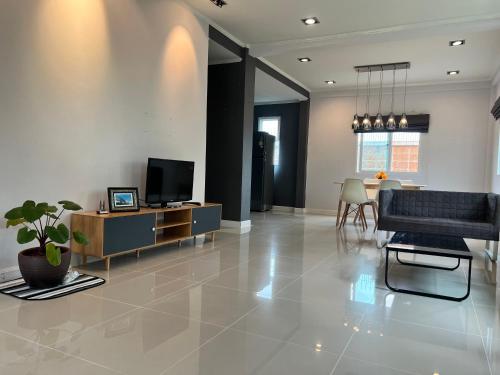 Featuring air-conditioned accommodation with a balcony, Happy home บ้านกว้าง ได้ทั้งหลัง ไวไฟฟรี1000Mbps ใกล้สนามบินสุวรรณภูมิ is located in Min Buri. This property offers access to a terrace, free private parking and free WiFi. During your stay at this villa, you can make use of a pool with a view, as well as a selection of a fitness room and full-day security. The villa features 3 bedrooms, a flat-screen TV, a fully equipped kitchen with a microwave and a fridge, a washing machine, and 3 bathrooms with a shower. The accommodation is non-smoking. Guests can also relax in the garden. Central Festival EastVille is 20 km from the villa, while Mega Bangna is 26 km away. The nearest airport is Suvarnabhumi Airport, 10 km from Happy home บ้านกว้าง ได้ทั้งหลัง ไวไฟฟรี1000Mbps ใกล้สนามบินสุวรรณภูมิ.