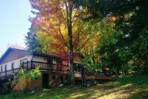 Featuring lake views, Biche et Lac provides accommodation with a garden and a patio, around 28 km from Foresta Lumina. This property offers access to a balcony, free private parking and free WiFi. The property is non-smoking and is located 28 km from Parc de la Gorge de Coaticook. The spacious chalet is equipped with 3 bedrooms, 1 bathroom, bed linen, towels, a flat-screen TV with streaming services, a dining area, a fully equipped kitchen, and a terrace with mountain views. Featuring air conditioning, this unit has a dressing room and a fireplace. For added privacy, the accommodation has a private entrance and soundproofing. Université de Sherbrooke Stadium is 15 km from the chalet, while Marais de la Riviere aux Cerises is 21 km away. The nearest airport is Montréal/Saint-Hubert Airport, 133 km from Biche et Lac.