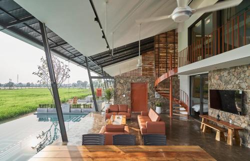 Boasting air-conditioned accommodation with a balcony, Champ Villa Long An is set in Ấp Bình Yên. This property offers access to a terrace, free private parking and free WiFi. Guests can make use of a bar. The spacious villa is composed of 6 bedrooms, a living room, a fully equipped kitchen, and 6 bathrooms. A flat-screen TV is offered. Guests can relax in the garden at the property. The nearest airport is Tan Son Nhat International Airport, 54 km from the villa.