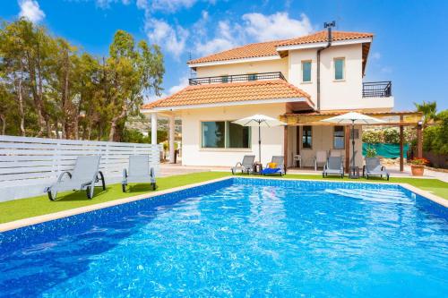 Set in Peyia, 2.9 km from Wild Beach and 3 km from Laourou Beach, Villa Archimedes offers air-conditioned accommodation with a balcony and free WiFi. This villa also has a private pool. Kings Avenue Mall is 14 km away and 28 Octovriou Square is 15 km from the villa. The spacious villa has 4 bedrooms, 5 bathrooms, bed linen, towels, a TV with satellite channels, a dining area, a fully equipped kitchen, and a terrace with sea views. Guests can take in the ambience of the surroundings from an outdoor dining area or keep themselves warm by the fireplace on colder days. Tombs of the Kings is 13 km from the villa, while Markideio Theatre is 14 km from the property. The nearest airport is Paphos International Airport, 22 km from Villa Archimedes.