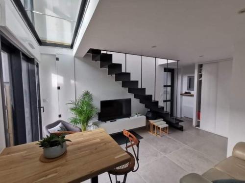 Maison bois Port-Louis is set in Port-Louis, 14 km from Parc des Expositions Lorient, 16 km from Lorient Train Station, as well as 17 km from Football Club Lorient. This beachfront property offers access to a terrace and free WiFi. The property is non-smoking and is situated 1.4 km from Grande Plage de Port-Louis. The holiday home is composed of 1 bedroom, a fully equipped kitchen, and 1 bathroom. A flat-screen TV is available. Plouharnel Train Station is 23 km from the holiday home, while Quiberon Train Station is 37 km from the property. The nearest airport is Lorient South Brittany Airport, 25 km from Maison bois Port-Louis.
