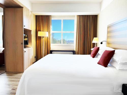 Surrounded by landscaped gardens, Sheraton Rome Parco de Medici features a 27-hole golf course and an outdoor pool. It is 10 km from Fiumicino Airport and 5 minutes' drive from Rome's A90 ring road. Rooms come with modern or classic furnishings, some of them handcrafted. All air conditioned, they offer satellite TV and views of the gardens, the pool or the golf course. Free WiFi is available throughout the entire property. Sheraton Rome Parco de Medici consists of a number of buildings across the green grounds. There are 8 individually decorated restaurants and bars serving international cuisine and cocktails. Wi-Fi is free in the lobby and shared areas. The hotel is located just outside Rome’s E.U.R. district,13 km from the historic centre. Friendly staff at the 24-hour reception can provide tourist information, and organise shuttle services to the airport and the city centre.