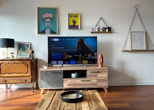 Appartement quartier calme. Proche Port et plages. Is situated in Saint-Brieuc, 600 metres from Museum of art and history of Saint-Brieuc, 1.7 km from Saint-Brieuc Train Station, as well as 16 km from Crinière Golf Club. It is set 500 metres from Saint-Brieuc Cathedral and offers a lift. There is a sun terrace and guests can make use of free WiFi and free private parking. The spacious apartment has 1 bedroom, 1 bathroom, bed linen, towels, a flat-screen TV with satellite channels, a dining area, a fully equipped kitchen, and a balcony with city views. The unit at the property features a bath and a dressing room. For added privacy, the accommodation features a private entrance. Ajoncs-d'Or Golf Course is 20 km from the apartment, while Pléneuf-Val-André Golf Course is 29 km from the property.