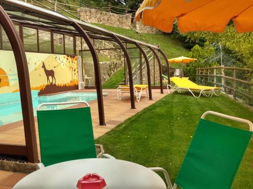 Situated in the small town of Sant Joan de les Abadesses, a 7-minute walk from Ter River, La Batllia I features a shared pool and a terrace with barbecue facilities. The apartments have free Wi-Fi and heating and include a living area with a fireplace, TV, and DVD player. The kitchen is equipped with a hob, dishwasher, and washing machine. There is 1 double and 1 twin bedroom, as well as a private bathroom with a shower. Towels and bed linen are provided. The property also includes a shared children’s playground, volleyball and badminton courts, and a small animal farm with cows and chickens. Camprodon Golf Club is 14 km away and L'Alta Garrotxa Nature Reserve can be reached in 12 minutes by car.