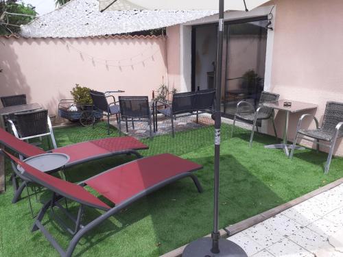 Set 9.2 km from Saint-Nazaire Cathedral, Loft avec clim, parking et jardin proche de la mer offers accommodation with free WiFi and free private parking. This recently renovated holiday home is located 10 km from Fonserannes Lock and 10 km from Beziers Arena. The property is non-smoking and is located 11 km from Mediterranee Stadium. The holiday home is fitted with 1 bedroom, 1 bathroom, bed linen, towels, a flat-screen TV with streaming services, a fully equipped kitchen, and a terrace with garden views. Guests can take in the ambience of the surroundings from an outdoor dining area. A dressing room and laundry service is also available. Guests can relax in the garden at the property. Aqualand Cap d'Agde is 26 km from the holiday home, while Espace Georges Brassens is 44 km away. The nearest airport is Beziers Cap d'Agde Airport, 12 km from Loft avec clim, parking et jardin proche de la mer.