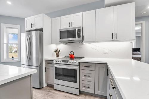 Set in Shelburne, 26 km from Theatre Orangeville and 18 km from Mono Cliffs Provincial Park, Tranquil 2BR Triplex in the Heart of Shelburne offers air-conditioned accommodation with a balcony and free WiFi. The property is non-smoking and is located 46 km from Pretty River Valley Provincial Park. The spacious apartment has 2 bedrooms, a TV, a fully equipped kitchen with a dishwasher and an oven, a washing machine, and 2 bathrooms with a bath. The accommodation offers a fireplace. The nearest airport is Toronto Pearson International Airport, 74 km from the apartment.