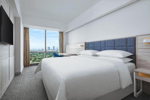 Located in Surabaya, 11 km from Pasar Turi Train Station Surabaya, Four Points by Sheraton Surabaya, Pakuwon Indah provides accommodation with free bikes, free private parking, an outdoor swimming pool and a fitness centre. This 4-star hotel offers a business centre and a concierge service. The accommodation features a 24-hour front desk, airport transfers, room service and free WiFi throughout the property. The hotel will provide guests with air-conditioned rooms offering a desk, a kettle, a minibar, a safety deposit box, a flat-screen TV and a private bathroom with a bidet. At Four Points by Sheraton Surabaya, Pakuwon Indah each room has bed linen and towels. The daily breakfast offers buffet, Full English/Irish or American options. At the accommodation you will find a restaurant serving Indonesian cuisine. Dairy-free, halal and vegan options can also be requested. Sharp Bamboo Monument is 11 km from Four Points by Sheraton Surabaya, Pakuwon Indah, while Submarine Monument is 12 km away. The nearest airport is Juanda International Airport, 21 km from the hotel.
