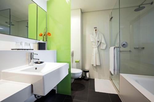 Crowne Plaza Tel Aviv City Center is one of Tel Aviv's most modern hotel. Set next to Azrieli shopping centre, it offers unique rooms with views of the city. Guests have free access to a fitness centre with indoor pool, sauna, and spa facilities (advisable to order treatments in advance). Rooms at this Crowne Plaza offer free Wi-Fi, a pillow menu, an LCD TV, and a coffee maker. On the 11th floor you can dine at the gourmet restaurant, open for breakfast. The hotel's modern design is evident as soon as you enter with its minimalist style and contrasting monochrome colours. The property is only steps away from the Sarona, a centre of culture, leisure and shopping. It is located inside 37 restored Templar settlement buildings now featuring cafés, restaurants, art galleries and shops. Tel Aviv HaShalom Train Station is right next to the hotel, which is surrounded by some of the city's most impressive skyscrapers. Ben Gurion Airport is a 20-minute drive away and guests can also enjoy discounts at Azrieli parking lot.