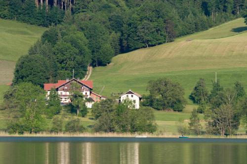Nussbaumer am Irrsee is a traditional farm 250 metres from its private beach on Lake Irrsee, which features a seating area and barbecue facilities. Each spacious apartment has a balcony with lake views. The rustically furnished apartments feature 2 bedrooms, a living room with cable TV, a kitchen with a dining area, and a bathroom. A washing machine and a tumble dryer can be used at a surcharge. For children, a playground with a trampoline and an indoor playroom are available at the Nussbaumer Weberhof. Guests can use a lockable bicycle storage room and play table tennis. Free private parking is available on site. Hiking and cycling trails, as well as a cross-country ski run, start at the doorstep. 3 restaurants are within 1 km. The centre of Zell am Moos is 4 km away, and it is 8 km to Mondsee. The closest bus stop is 2.5 km away.