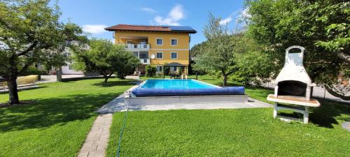 Offering barbecue facilities and pool view, Ferienwohnungen Pippenbach is located in Unternarrach, 25 km from Krastowitz Castle and 27 km from St. Georgen am Sandhof Castle. This apartment features a private pool, a garden and free private parking. On clear days, guests can head outside to enjoy the apartment's outdoor fireplace or simply kick back and relax. All units comprise a seating area, a dining area, and a fully equipped kitchen with various cooking facilities, including a dishwasher, an oven, a microwave and a toaster. All units are equipped with a coffee machine, a flat-screen TV, a safety deposit box and free WiFi, while selected rooms come with a terrace and some have mountain views. At the apartment complex, every unit comes with bed linen and towels. For guests with children, the apartment provides indoor and outdoor play areas. Welzenegg Castle is 28 km from Ferienwohnungen Pippenbach, while Provincial Museum is 30 km away. The nearest airport is Klagenfurt Airport, 24 km from the accommodation.