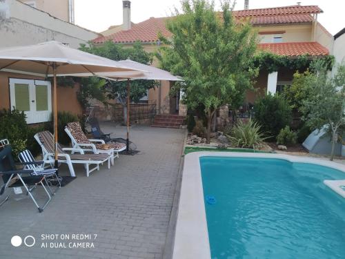 Situated just 10 km from Hanging Houses of Cuenca, Rural Olalla provides accommodation in Villar de Olalla with access to a garden, a shared lounge, as well as a tour desk. This holiday home offers free private parking and a shared kitchen. The property is fitted with a seasonal outdoor pool with a fence and is set 9.4 km from Cuenca Train Station. The holiday home consists of 4 separate bedrooms, 3 bathrooms and a living room. The holiday home also has 3 bathrooms. For guests with children, the holiday home features both an indoor and outdoor play area. The holiday home features a barbecue, outdoor fireplace and sun terrace. Mangana Tower is 11 km from Rural Olalla, while Nuestra Señora de Gracia's Cathedral is 11 km away. The nearest airport is Albacete Airport, 167 km from the accommodation.